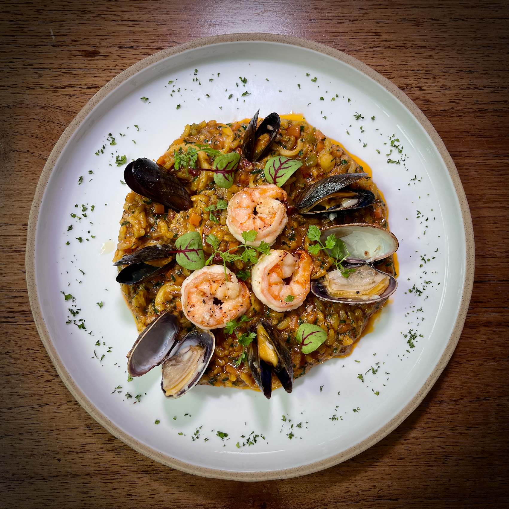 Immerse yourself in a culinary voyage with our homemade Seafood Risotto, meticulously crafted using the finest, freshly imported ingredients. This indulgent dish is a celebration of the sea's bounty, featuring succulent prawns, tender squid, and plump mussels, perfectly woven into a creamy bed of Arborio rice. Each mouthful is a symphony of flavors and textures, promising a dining experience that transcends the ordinary.